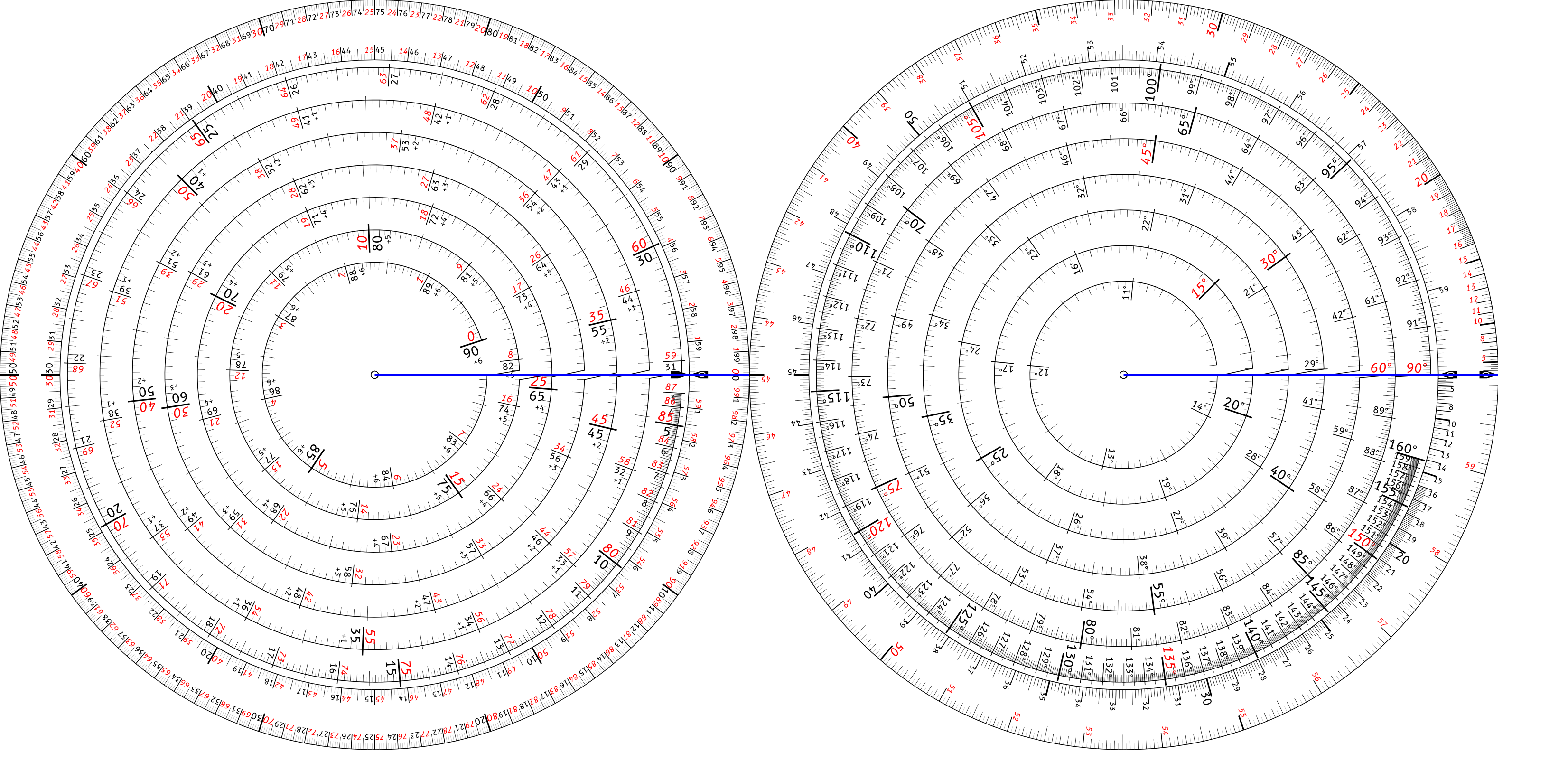 Since that removes all of the multiplications and can be done on my spherical triangle slide rule (the left side of the attached image shows the non-log Haversine, the right side shows the Log Haversine and dual Log Cos scales)