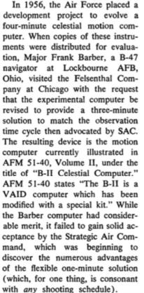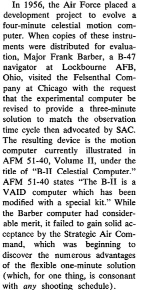 I recently acquired a B II Celestial Computer in somewhat rough shape (photo attached). Does anyone have any information on this device? According to a snippet I found in an old 1965 issue of The Navigator (also attached below), the device was described in at least one edition of AFM 51-40: Volume II (probably an edition from the early 1960's). Would anyone happen to have a copy of that particular AFM 51-40 (pre-1973) and be willing to scan/share the relevant page?