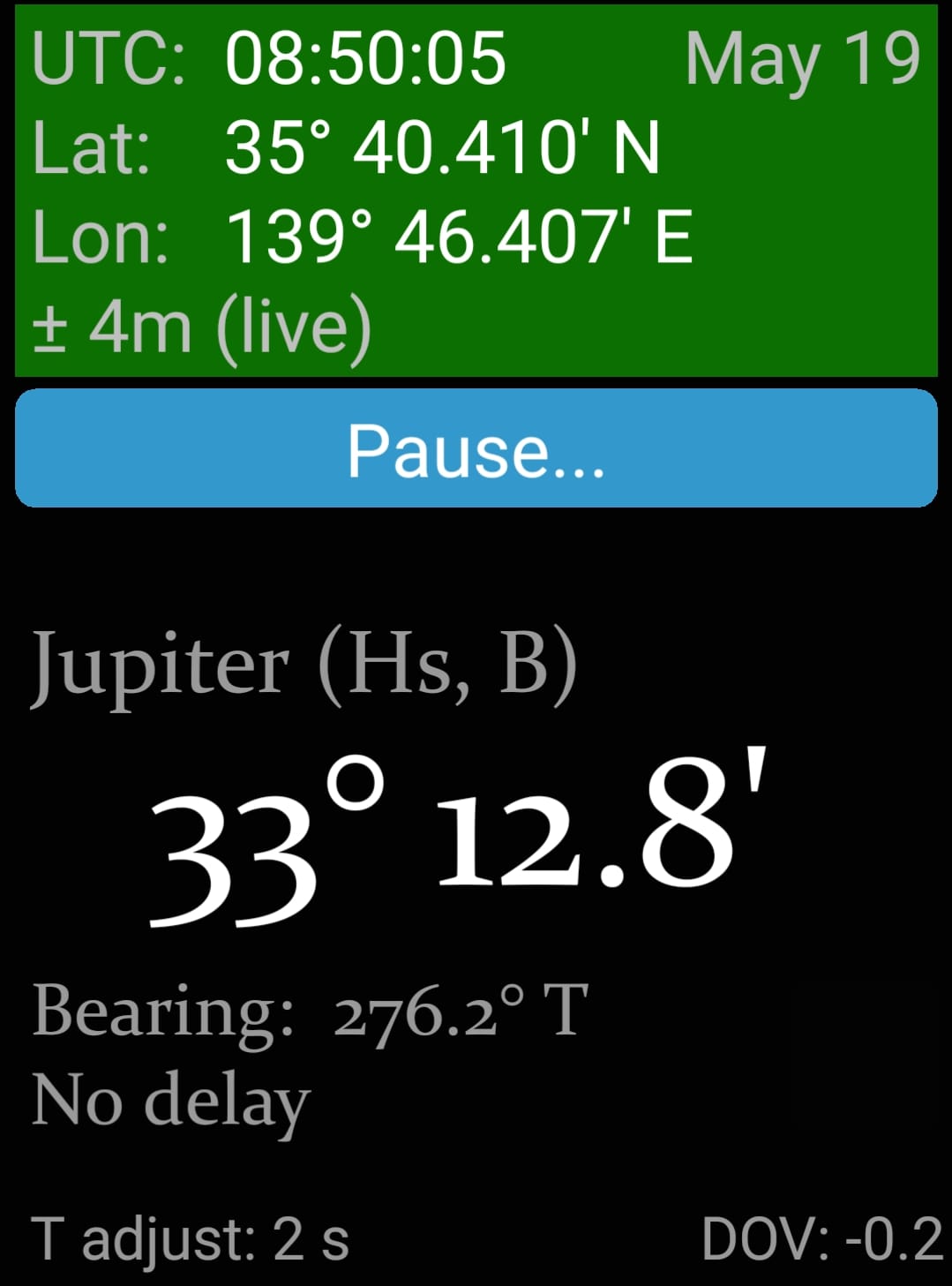 Nevertheless, I wanted to practice celestial navigation during the trip and work the sights manually using the nautical almanac and the tables 249, so I used Frank's GPS anti spoof application to take some sights on the streets of Tokyo.Clearly, the objective was not to test the application's precision but rather to practice sight reductions on Eastern longitudes, something that most of us do not regularly do.. In particular, I wanted to get more practice of calculating LHA of Aries, Sun and planets when the assumed position is on Eastern longitude that requires some extra thinking.