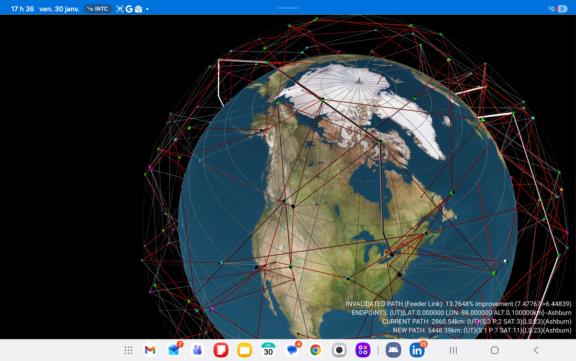 More about myself: I am an engineer and I've been working in the satellite industry for the past few years, planning and designing satellite constellations. I am quite familiar with perturbation theory and geodetic calculations (in fact I'm wondering how the actual ellipsoid shape of the earth impacts the accuracy of the simplified spherical trigonometry used in celestial navigation?). I know ephemerides can be calculated by integrating equations from the JPL but that would not be possible on a calculator so I was very happy to find the polynomial formulas on celnav.de. I have included a screen shot of another proof-of-concept program I wrote to orchestrate the flow of traffic between user terminals and ground stations in real time across an OISL-equipped satellite constellation that is currently being built.