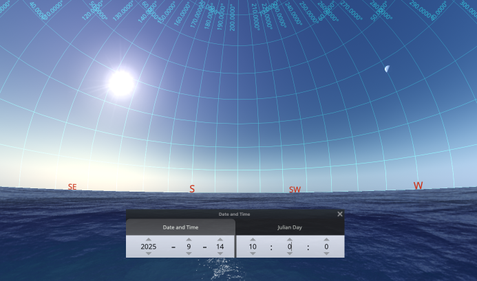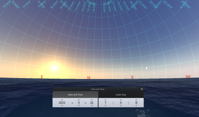 I compared today with a similar date six months ago. Stellarium simulations for 50°N, 1°E attached below... The Sun and Moon could both be found in the sky then, too, but their altitudes were much lower, and the period of time when both were in the sky was much shorter. Also, that was at 7am, which is a bit less "civilized" (for me, at least!). For anyone thinking of demonstrating lunars in the UK, you have to plan a little more carefully for appropriate dates.