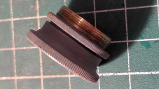 Maybe mine is has a different assembly process. The filter shade is right near the peep hole. The eyepiece looks like a 2 X piece threaded construction. That looks like it screws apart. The grey paint might be locking the threads. I am going to try and unscrew the assembly. It appears that the clear magnified lens on mine is in front of the green shade. I cant see how I can push the magnified lens out to remove the filter. I will try and see if it is possible.