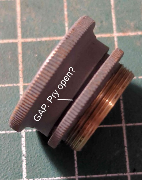 You may discover that the scope shade is just stuck, slightly corroded onto the eyepiece component. I had a sextant like this some years ago, and a number of the scope parts had to be forced apart. It's not the sort of thing you want to do, of course! If you attempt to force apart bits that are not supposed to come apart, you can do permanent damage. But in this case, it may be worth a try. Could you stick a screwdriver blade or something similar in that "gap" just below the shade (see markup of your photo below)? Work your way around, every 60° or so, and you may be able to pry the shade off the eyepiece. It might just pop right off. If it's screwed in place, it probably can't do any harm to try this with reasonable force.
