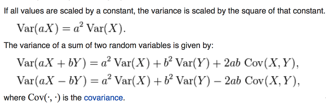 Regarding combining variances, also attached is a piece from Wikipedia about that. Note that if there is a significant covariance between measurements, it should be subtracted from a difference between them and added to their sum. Adding variances is only appropriate when they are uncorrelated. I’ll leave it to you to compute the covariance between your on and off the arc measurements because I’m approaching the edge of my comfort zone in statistics.
