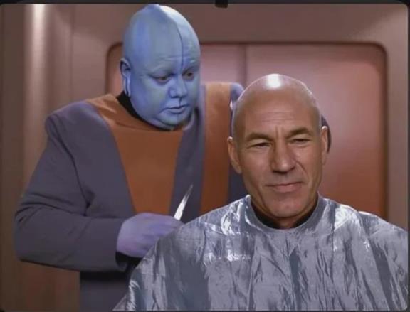 Oh, you may have missed the starship orientation after we departed Wolf 359... There's a barber shop on Deck 4, Section 31. See photo.