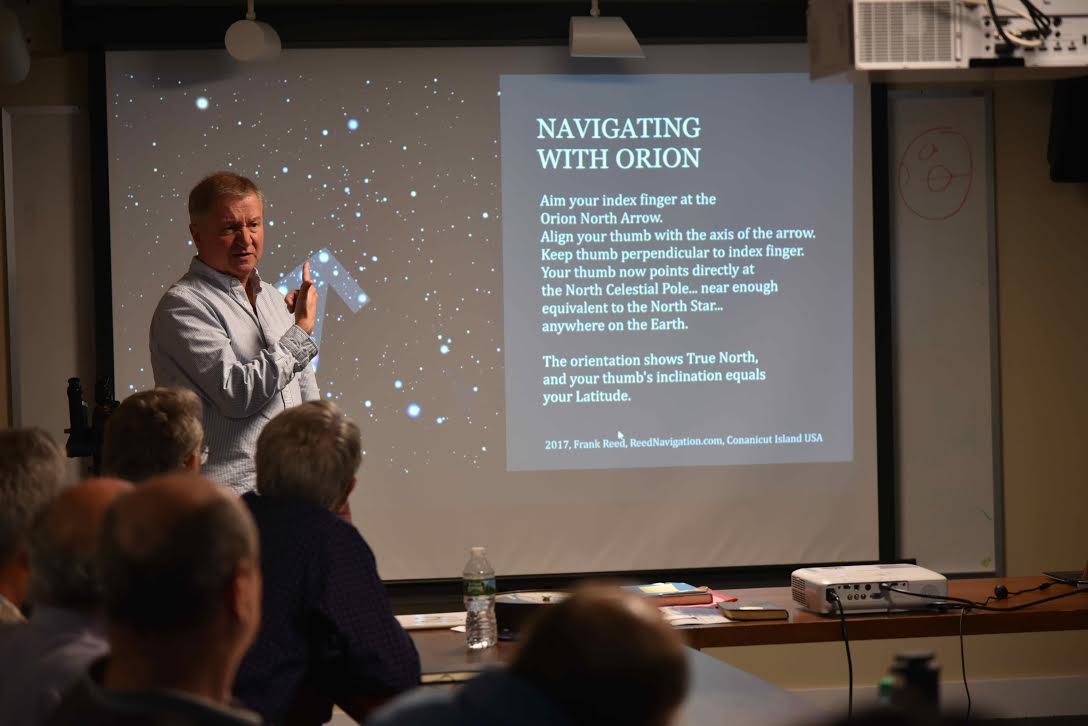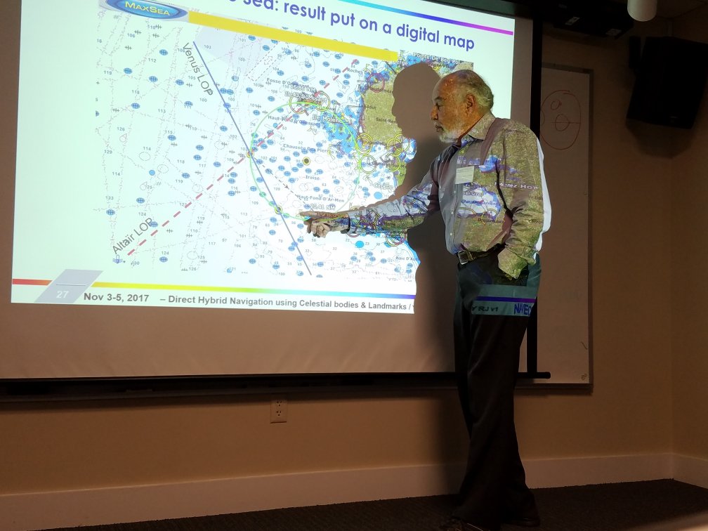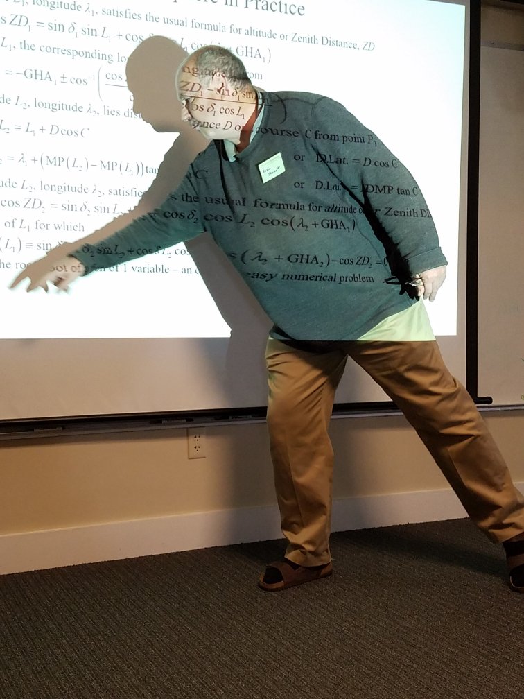 Practical navigators, experts in navigation theory, and historians of science met at Mystic Seaport, November 3-5, 2017 for the Celestial Navigation Symposium, a conference devoted to celestial navigation, both historical and modern, and related topics. Compiled below are summaries of the presentations, pdf editions of the presentations, and some photos of the presenters giving their talks. Special thanks to Ed Popko for many excellent photos and also for his role as timer, which he executed with precision and tact. And thanks to Phil Sadler for his help and his photos from the event.Join us for continuing discussions of celestial navigation and other methods of tradional navigation online. NavList is the premier online community for celestial navigation and one of the co-sponsors of the Navigation Sympsosium. Visit NavList here: fer3.com/arc. The NavList message boards include archives going back over twenty years, and nearly every topic in celestial navigation has been discussed at least once. For lighter discussions and an informal atmosphere, consider joining the Facebook Celestial Navigation group.