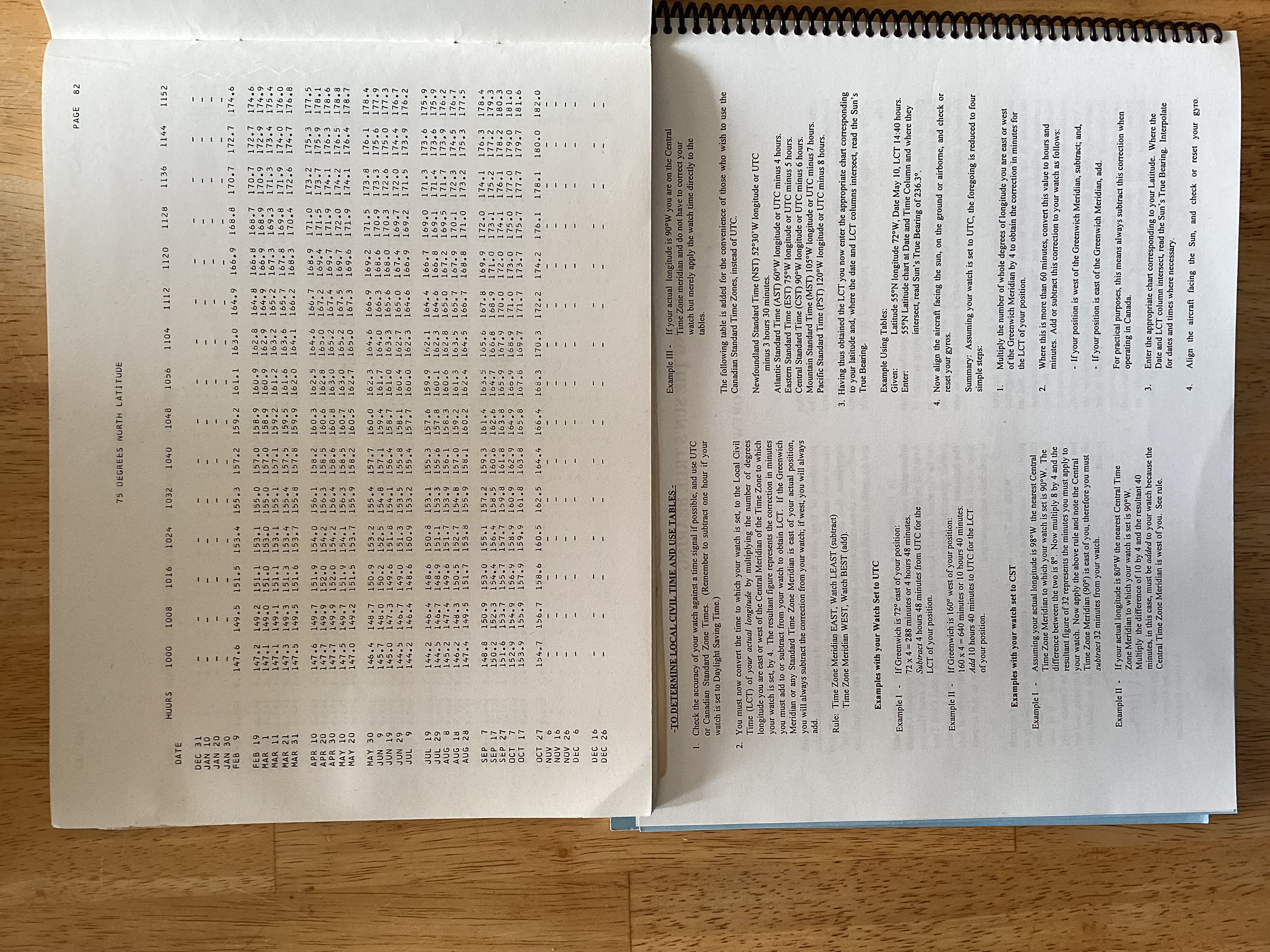 Later, I flew whale surveys over the Beaufort Sea with a VLF/Omega setup and the last time (spring 2007) that I flew in those latitudes, I supported the US Navy at a camp on the ice 200 nm north of Prudhoe Bay, Alaska; 70N, equipped with a GPS. Much better avionics than in earlier years, but in the spring and summer, I still always carried at a minimum, the Canadian Pub TP 784E, nonetheless. In the autumn or winter, I always carried my Astro Compass.
