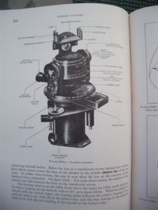 As you requested, here are the photos I took. IMGP2017 is an illustration from H.O. 216 of the Astro Compass. 2002 is a photo of mine. 2006 shows the polarozing camera filter with the rectangle of celophane balanced on top of the astro compass. 2005 shows the celophane on top of the filter. 2015 shows the dark rectangle. 2014 shows the light rectangle. 2012 shows the match point, equally dark filter and celophane rectangle. I will scan the pages of H.O. 216 on tuesday. I remember reading about the Bris sextant in Ocean Navigator magazine several years ago. Gary LaPook Marcel Tschudin wrote: Gary I'm one of those lurkers in this forum who never had a possibility to hold a sextant in his hands. My practical experiences are therefore equal to nil. I did admire the simplicity of the Bris sextant which was discussed some time ago in this forum. I'm just wondering if it would be possible to design something like a "Bris 2" by using this technique? As I mentioned before, I could imagine that your comments made here, possibly also the photos and the relevant pages from H.O. 216 might all be of interest to the authors of the paper. Why not sending it via the journal (or the newspaper) to their attention? Marcel On 2/18/07, Billwrote: >> If anyone is intersted I took some pictures of this >>operation and I could scan the relevant pages from H.O. 216. and could >>send them to you. >> >> >Gary > >Please send the pictures etc. > >Thank you. > >Bill > >billyrem42@earthlink.net > --~--~---------~--~----~------------~-------~--~----~ To post to this group, send email to NavList@navlist.net To , send email to NavList-@navlist.net -~----------~----~----~----~------~----~------~--~---