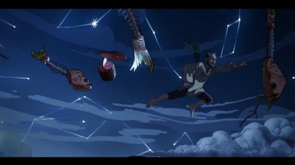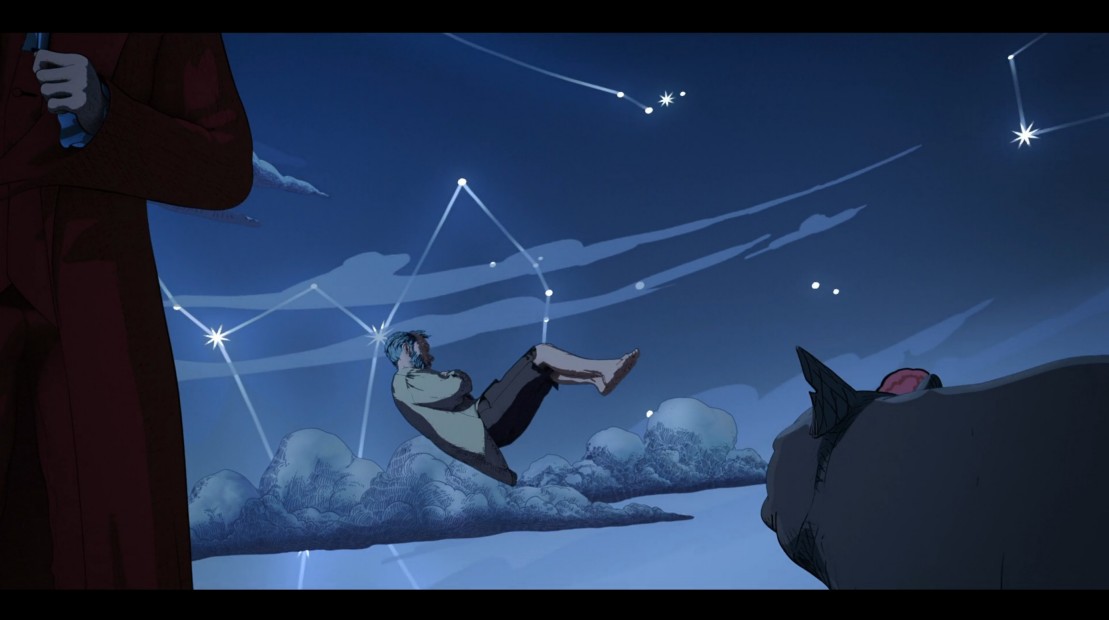 This week in pop culture, there's a new season of an animated anthology with an episode set in the 1750s in Britain. It seems that Satan is trying to persuade a cat to work against his master. Satan convinced the cat to step "outside" in a sort of dreamscape with an animated simulacrum of the night by offering him treats (including fish heads, hence the floating oddities in the second image). And in this fanciful night sky, there are constellations sketched out with some connecting lines --which are, by the way, completely anachronistic for the 1750s!