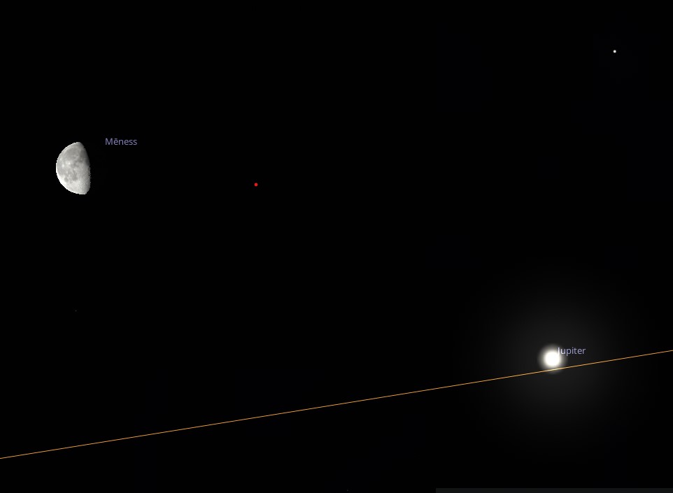 I wonder: Shouldn't Jupiter be located below the line that marks the direction from the Moon to the Sun on this date and time (below Southern end of the Moon)? Is this fuzzy dot Jupiter?