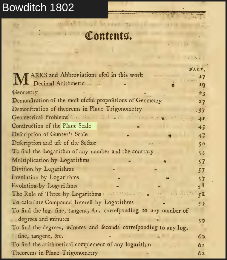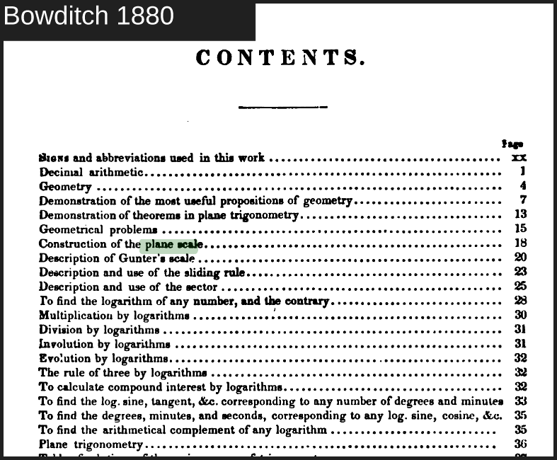 Robin, you mentioned "The 1851 edition of Bowditch [...] calls it a Plane Scale."