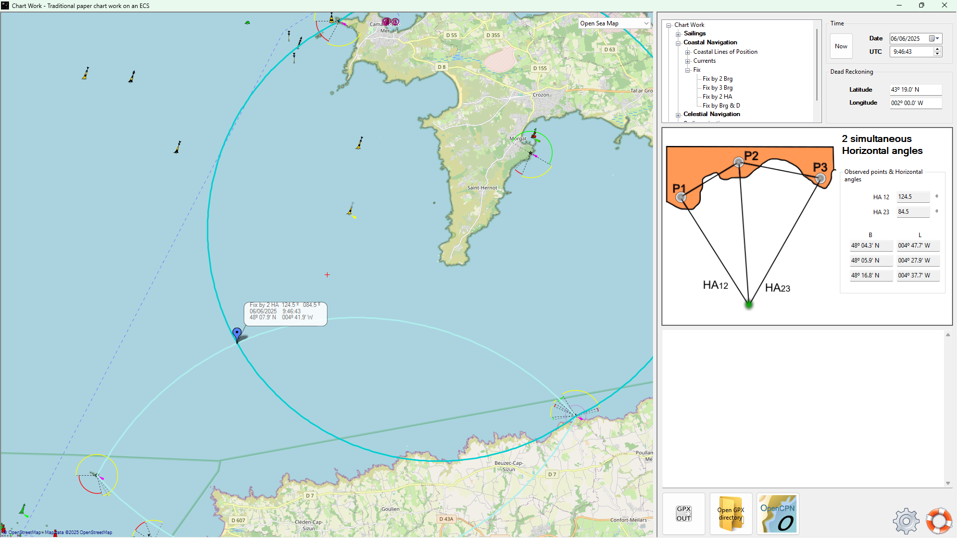 • Lines of position: coastal (bearing, range, horizontal angle), celestial (Sumner, MSH, CoP), radionavigation (RDF).