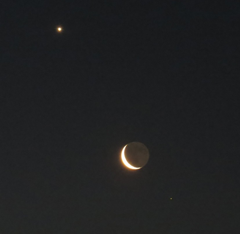 The link you posted is actually useful in an interesting way because it is not a match for what we see in the photo. Like many online descriptions of conjunctions involving the Moon, that one is written by someone with a "home market", and for the Moon, this matters. From a particular longitude, the Moon may be lined up with a planet just before sunrise while in a significantly removed longitude, like on a different continent, no interesting alignment happens at all. And that's the case here.