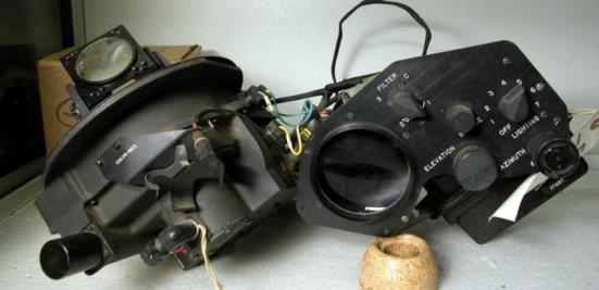I couldn't find any connection to an aircraft type, but I'll guess: a later model B-52. The part of your unit with manual controls (knobs for bubble, elevation, azimuth, lighting) looks like something that would have been fitted into a navigator's station. Can we find any photos of navigator stations on B-52's and other bombers, other large USAF aircraft, with that specific block of controls?
