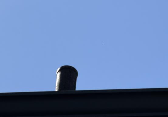 Here's today's photo. Fortunately, the phone camera decided to leave the focus close to infinity so Venus showed up clearly. Some of you may recall I took a nearly identical photo with Venus near that same little chimney a couple of months ago when Venus was trailing the Sun, a couple of hours after noon instead of before noon, as it was today.