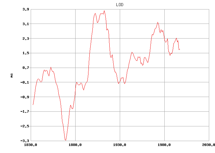 4) A plot of historical LOD values which shows frequent variations in the