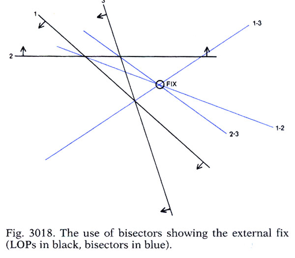 > George writes: > > List members will appreciate the difficulties we are faced with in > trying to convince others about the realities of a cocked hat. > Already, three have put their heads up in defence of their cherished > illusions; Peter Fogg, Bill, and Robert Eno. No doubt, others will > join them. We've seen it before. More like an argument out of a statement or two. I do not doubt George's 25% figure, I have just, as noted, never seen it before. While not a precise statistic, my intention was to agree with George, hence the statement term "hit or miss" based on not knowing if there were personal or systematic errors at the time. My belief at the time being that those potential problems, as well as using celestial objects with azimuths of 180d or less apart, could lead to the fix being external rather than internal (inside the cocked hat). George's scholarly and thorough explanation was most appreciated. Live and learn. Just to set the record straight, below is the only reference I have read. This is simply a statement, not a position or jumping off point for an argument.Opinions? Bill ========== LOP BISECTORS Dutton's Nautical Navigation 15th Edition 3018 When observations of a number of bodies with azimuths all lying within a horizontal 180d sector of arc are obtained, a constant error (in both magnitude and sign) may yield misleading results if the fix is assumed to lie within the polygon formed by the LOPs; such a fix is often called an "internal fix. Such constant errors could result from an uncorrected personal error or from unusual terrestrial refraction, which causes the value of the dip, as obtained from the Nautical Almanac, to be considerably in error. The correct fix may lie outside the polygon, resulting in an "external" fix rather than the usual internal one. Where multiple LOPs well distributed in azimuth are obtained, this problem does not arise, because in this case the error may be assumed to affect all LOPs about equally. Where three or more observations are made of bodies with azimuths within 180° of each other, it is useful to use LOP bisectors to determine the fix. Each angle formed by a pair of position lines is bisected, being drawn in the direction of the mean of the azimuths of the two bodies. For example, assume that because of cloud cover, only three stars could be observed, the respective azimuths being as follows: star No. 1, 224d; No. 2, 000d, and No. 3, 256d. The resulting LOPs are plotted in figure 3018. Note that arrows have been added to each LOP to show the direction of the celestial body; this practice is desirable for any celestial plot. LOPs 1 and 2 will be bisected in the direction 292d>- 112d: ((224 + 000)/2) = 112 LOPs 1 and 3 will be bisected in the direction 240d 060d: ((224d +256d)/2) = 240 and LOPs 2 and 3 will be bisected in the direction 308d 128d. In figure 3018 these bisectors are drawn in as blue lines. The most probable position for the fix lies at the center of any small triangle formed by the three bisectors, rather than in the triangle formed by the three LOPs. Note that this external fix shows an apparent greater "error" (distance from the three LOPs) than is shown by assuming the center of the original triangle, but this disparity is misleading. It can be seen in figure 3018 that the external fix is a point equidistant from each LOP in the same direction, "away" in this example. Such a point can also be estimated by eye, taking care to always be on the same side of each LOP as indicated by the arrows. This technique is more practical at sea than calculating the bisector directions and cluttering up the plot with several additional lines; it should be sufficiently accurate for practical navigation. The "external" fix should be found and used only when there is good reason to believe that there is an error in each observation of constant magnitude and direction. Barring this condition, the navigator is safer to use the internal fix. --~--~---------~--~----~------------~-------~--~----~ To post to this group, send email to NavList@navlist.net To , send email to NavList-@navlist.net -~----------~----~----~----~------~----~------~--~---