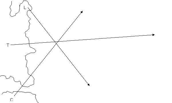 What this coastal nav course proposed was taking the same three corrected bearings but plotting from the fix position onto clear material from a point on the plastic sheet representing the side opposite to the land the seaward side. So three position lines radiating outwards.