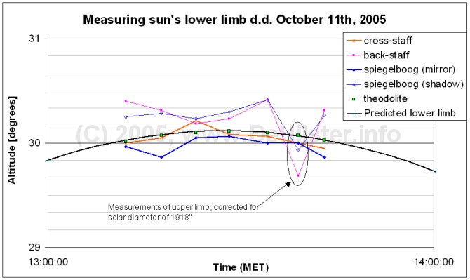 Ted Gerrard wrote: > * > > What was surprising was that the spread across the fleet's 7 backstaff > noon sights was biased entirely to the south of the fleet's true > position, the best of the bunch being some 12 miles in error. Had the > spread straddled the true latitude the disaster just might have been > averted. > > * Being 1707 we may assume that the backstaffs were Davis' Quadrants. In Philosophical transactions, volume 37, num 423, page 277 (1731-32) we can find the following information on the accuracy of the Davis' quadrant, compared to the Elton's Quadrant (a Davis' Quadrant with artificial horizon): > There was at the same time laid before the Society, > " An Extract made by Mr. Elton of Observations of > " the Latitude from the Journal of Capt. Walter > " Hoxton, Commander of the Ship Baltimore from > " the River of Thames to Maryland on the Conti- > " nent of America, by Davis's (or the common) > " Quadrant with the Horizon, and by Mr. Elton's > " (a new invented Quadrant) without the Horizon, > " Anno Dom. 1730." > > From this Extract it is observable, that in mode- > rate Weather the Difference of the Observations, made > by the two Sorts of Quadrants, was commonly no > more than 1'; with strong Galse and large Sea 5'; > in fair Weather; in hard Squalls; the Sea running > high, 6'; in easy Gales 9'; in fir Weather and a > large Swell 16'; once in smooth Water 16'; and the > greatest Difference of all was, with fresh Gales, 21': > And this Difference was constantly found to give the > Latitude more Northerly by Mr. Elton's Quadrant > than by Davis's;... Furthermorein his book 'A History of Marine Navigation' W.E. May states (page 23, 2nd paragraph) that 'It was generally considered that even the Davis back-staff was not accurate within six minutes.". In the accompanying footnote it can be read that "Walter Maitland, in 'An Essay towards the Improvement of Navigation' (c. 1750), says twelve minutes". Finally tests done by me using a Davis Quadrant on shore showed that getting a proper altitude is far from easy. A graph is included in this mail showing that even on Terra Firma errors over 20' are easily achieved (the graph can also be found on my website: http://www.dehilster.info/instrumenten/spiegelboog/images/results.jpg). We took several lower limbs and one upper limb to see whether the error was due to instrument errors or due to observation errors. It is clear that the latter was the case. As from 1731 it was no longer allowed to use the Davis Quadrant on board of the Dutch VOC vessels, simply because of its inaccuracy. The octant was not allowed on board of the VOC vessels until 1748, so they had to rely on the cross-staff and spiegelboog during that period (although it is known that octants have been in use during this period as well). Nicolàs --~--~---------~--~----~------------~-------~--~----~ To post to this group, send email to NavList@navlist.net To , send email to NavList-@navlist.net -~----------~----~----~----~------~----~------~--~---