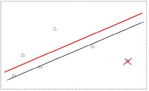 Peter wrote > Since slope analysis is all about drawing a picture, to assist the > evaluation of a series of sights of the same body made over a short period > of time, I thought it might be helpful to provide simple illustrations, not > least to assist those who still have difficulty in appreciating how slope > analysis tends to be superior to some form of averaging... I had to smile looking at your final graphic, remembering a recent experience. I don't know your y scale, but I would tend to give some weight to the observations above the line. 3 outliers out of 6 observations seems a bit much. Your line seems to have a greater affinity for the concept of central tendency than the small n would warrant IMHO. I would tend to slip the slope up as per the attached graphic. And that's what makes it a horse race ;-) The recent experience? Observations with an artificial horizon from a known position. I quickly compared the 6 observations with the actual Hc's, calculated the mean of the errors and n-1 standard deviation. Whoa, the n-1 s was larger than half the range! What happened? As I looked for the reason, I saw I had an equal number of observations 0!2 away and 0!2 towards, with nothing in between. A reminder that with that few observations, I should not matter-of-factly expect a Gaussian distribution. I feel, even though we are using the actual slope, if we simply say 3 out of 6 are on the line so that must be it; we fall into the same trap Burch pointed out regarding best fit/linear regression. In his example 3 out of 4 fit an arbitrary line, so the one off the line must be the outlier. Once the actual slope was used we saw that what looked like the outlier was not. My +/- 0!2 result was strange be sure, but if just on was off of 0!2, should I then automatically snap the line to the 3 that lined up perfectly? Bill B. --~--~---------~--~----~------------~-------~--~----~ Navigation List archive: www.navlist.net To post, email NavList@navlist.net To , email NavList-@navlist.net -~----------~----~----~----~------~----~------~--~---