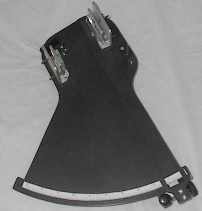 The octant is made of 3/16 inch aluminum plate with paper scales. Although not equipped with a micrometer, it does have a fine adjustment screw and vernier.