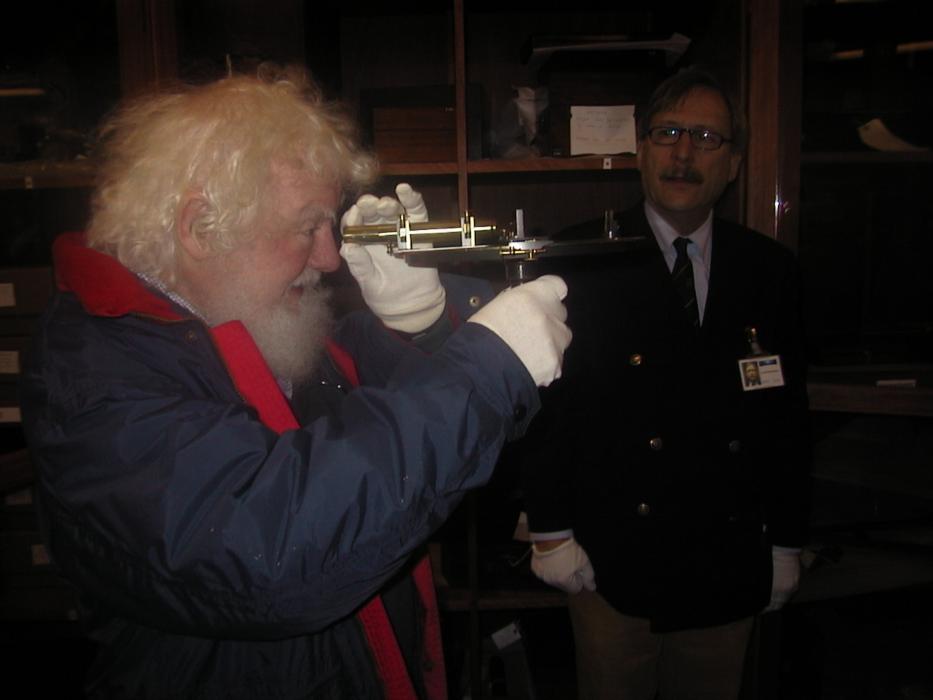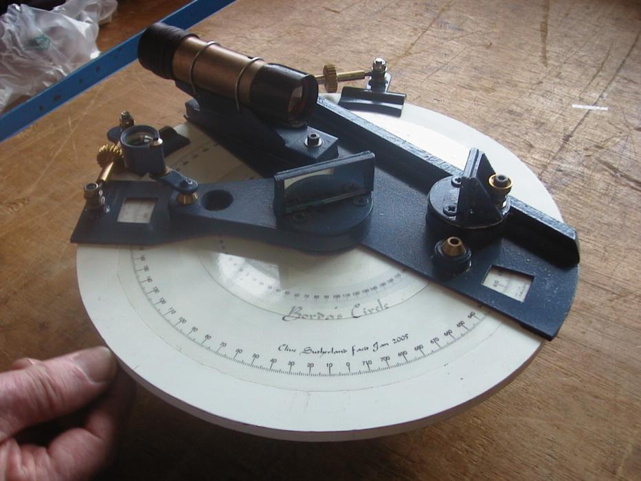 Just to amuse you, I have attached a picture taken on occasion of the NMM symposium a couple of years back showing George taking a cupboard - shelf distance with a reflecting circle. Willem Mörzer Bruijns standing to attention (or he might be fearing that George may drop the valuable item). And a picture of the Borda circle that Clive built which George referred to.. Must be the only reflecting circle built so far in the 21st century. --~--~---------~--~----~------------~-------~--~----~ Navigation List archive: www.navlist.net To post, email NavList@navlist.net To , email NavList-@navlist.net -~----------~----~----~----~------~----~------~--~---
