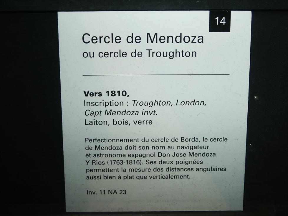 George, among the pictures that Jan Kalivoda took in the Museé de la Marine (Paris)is a photograph which - according to the accompanying text - shows a Mendoza circle built by Troughton. This may be the instrument which is depicted in Randier, Nautische Instrumente (there must be an English translation), p. 127. Unfortunately Randier does not say to which institution the instrument belongs. Have a look at the pictures attached. Wolfgang --~--~---------~--~----~------------~-------~--~----~ Navigation List archive: www.navlist.net To post, email NavList@navlist.net To , email NavList-@navlist.net -~----------~----~----~----~------~----~------~--~---