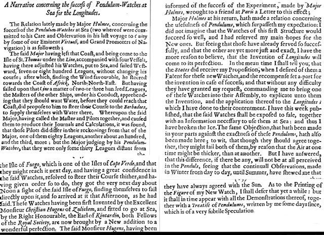 Huyghens timekeeper attempt.