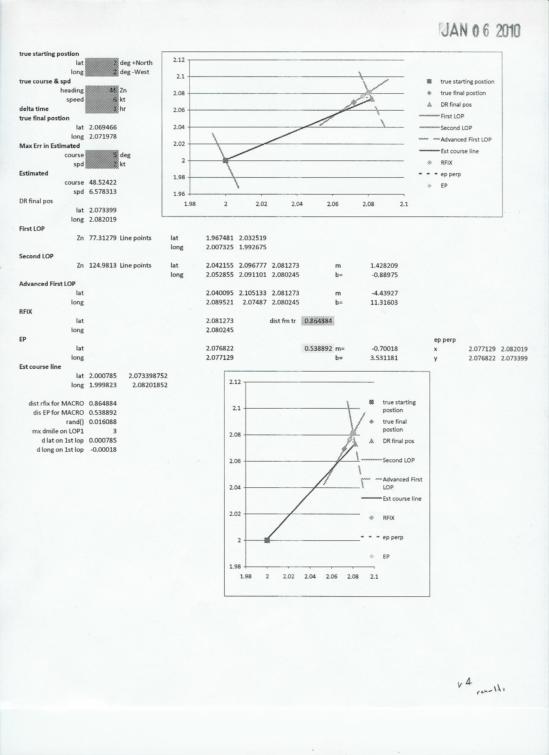 The question of the relative merits of a traditional running fix vs an estimated postion based on minimizing the distance from the DR position to a point on a second LOP has been discussed recently. Three attachents are given which summarize a Monte Carlo simulation that was carried out in an attempt to provide some quantitative results to further the discussion.
