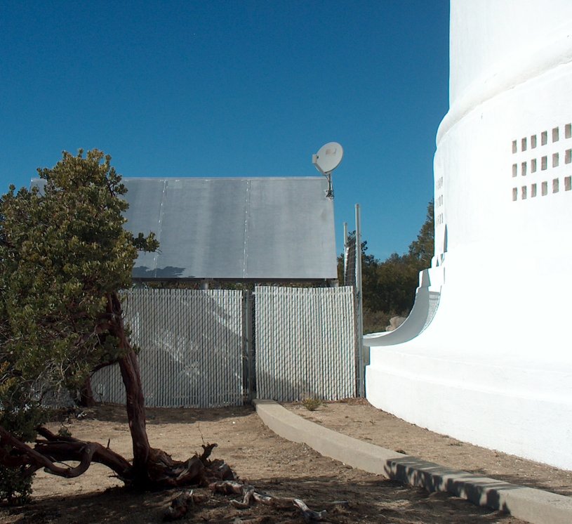 Attached is a photo of something I found around back of the telescope's dome. I imagine the telescope operators have little to do at night while the automated observing programs are running so I suppose they deserve some entertainment. That's a DirecTV dish, not a radio telescope! ;-) And that provides a nice lead-in to a bit of positional astronomy software that I wrote back in the early 1990s. In 1993 I bought the very first DirecTV system ever installed in the city of Chicago. In those early years, there were very few professional installers so you had to wiggle the dish around manually until it was pointed at the right spot in the sky. Positioning the dish on the roof by varying both azimuth and elevation and then running back inside to check signal strength was tedious work and the orientation was different for every latitude and longitude in the US. So I wrote a little bit of DOS software which calculated the exact time of day for a given location and day of the year when the Sun would be in the same azimuth as the DirecTV satellites. Then one could wait until that time of day, align the dish's receiving arm until the shadow was minimized, and quickly run through the elevation angle without worrying about azimuth. It was a very popular download on Compuserve for a while. Alas, poor Compuserve... I knew him well. That was the only practical application I found for my nautical astronomy knowledge back in the early 1990s, by the way.