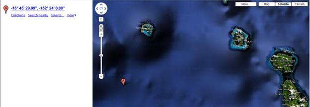 However, using Kermit’s derived lat, long, we can find that the location is near to Tahiti, yet it is still out in the Pacific Ocean.