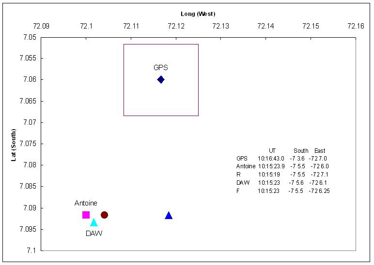 I too have been working on this exercise. (And I too thank you for providing the observations!) In the attached figure, I have tried to plot the GPS, Antoine's result, my result, and the results of two tools (which I may or may not have applied correctly). Three bunch quite closely. One is an 'outlier', but is does agree better in Longitude. Anyone else?