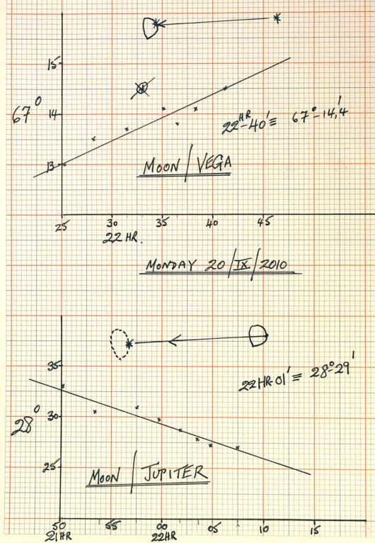 a few points (observations) -obtaining much better accuracy than any other method. You will note in the graph of Vega/Moon this is shown quite well with one shot being 'way out' which is immediately discarded.