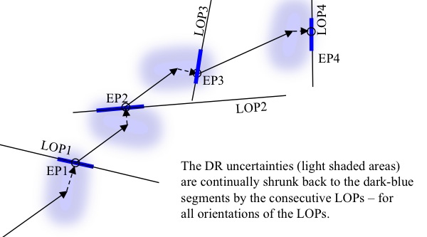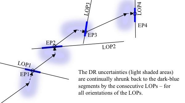 Lastly, I can’t resist attaching a third diagram showing how a sequence of EPRFs continually limits the EP uncertainty, regardless of the relative LOP orientations -- any newly acquired LOP must improve the estimated position.