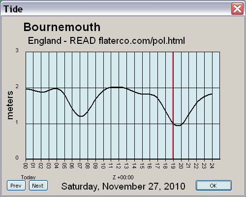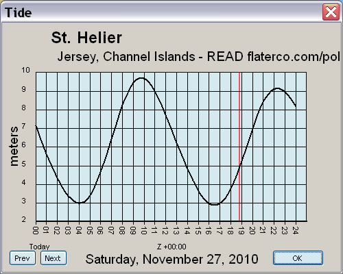 Is amazing to see how the tide changes from the departure port to the the Channel islands, (see attached graphs).