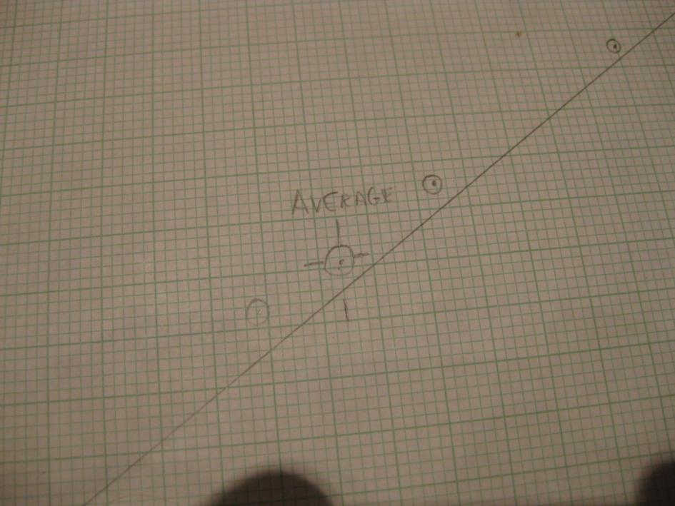 photo) I measured the distance of each point from the slope and got 3.8', 2.5', 4.1', 2.6', 1.9', and