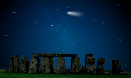 On 1 Feb, the following item appeared in the printed version of theGuardian newspaper- (The best places to see stars in Britain, 1 February, page 3, G2). Itappeared on the online version the previous day, at- http://www.guardian.co.uk/science/2011/jan/31/best-stargazing-britain In the printed version of the paper, the picture was captioned "A meteor storm over Stonehenge", which was obviously incorrect. The printed version was a bit different from that shown in this online version, in that the comet had been cropped off it. Yesterday, the following correction appeared, in- http://www.guardian.co.uk/theguardian/2011/feb/03/corrections-clarifications as follows- • A photograph used to illustrate an article about stargazing was wrongly captioned as showing "a meteor storm over Stonehenge". In fact it was a photograph of stars taken with a long exposure which, due to the Earth's rotation, produces the effect of trails (The best places to see stars in Britain, 1 February, page 3, G2). ======================= Indeed, that wasn't all that was wrong. The area around Stonehenge does not have particularly dark skies, and indeed a main road runs right past the Heel Stone, so it is hardly a good place for "watching stars". But, more particularly, the star background looks to me to be quite wrong, for somewhere as far North as Stonehenge, at 51º N. The star pattern should then be rotating about the South Celestial pole, a point that lies 51º below the horizon. It looks to me as though the star background shown in that picture is centred much closer than that to the horizon, perhaps only 25º or so below it, indicating that it was taken from much nearer to the tropics. Am I right? To be sure, I need to identify that pattern of stars, and whether it is indeed that of the Southern stars, or the Northern. I'm not familiar enough with the stars to identify what part of the sphere is being shown here (with the comet behind it), but I'm sure it will be instantly recognisable to some Navlist members. All that's needed is to give a name to one or two of the stars in the picture, and the rest will follow. It seems pretty clear, to me, that this is a completely-bogus composite agency picture, with the stars, and independently the comet (which seems to show little streaking) superimposed on to the picture of Stonehenge. As it is against stated Guardian policy to publish such pictures, I am collecting evidence to show the error of their ways. George. contact George Huxtable, at george@hux.me.uk or at +44 1865 820222 (from UK, 01865 820222) or at 1 Sandy Lane, Southmoor, Abingdon, Oxon OX13 5HX, UK.