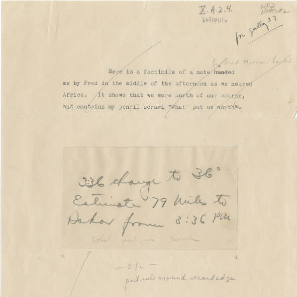 wrote: “When we first sighted the African coast, thick haze prevailed and for some time no position sight had been possible. My navigator indicated that we should turn south. Had we done so, a half hour would have brought us to Dakar. But a "left turn" seemed to me in order and after fifty miles of flying along the coast, we found ourselves at St. Louis, Senegal.” (Last Flight, page 119) I note that Earhart put "left turn" in quotation marks. I wonder if in 1937 the phrase "left turn" might have had some slang meaning such as wink, wink, "I'm just kidding" or "this is a joke" or whether there was a then current story about someone using that phrase as some kind of inside joke or other tongue-in-cheek meaning. I also wonder if Noonan's note saying they were 79 miles from Dakar was also tongue-in-cheek, stating this to such a high level of precision when he knew that there was a large uncertainty band (71 NM, 82 SM) at 1836 Z. It was like saying 'we have 79 miles to go, plus or minus 82 miles,' meaning they may have already passed Dakar or that they might still have 161 SM to go. gl |