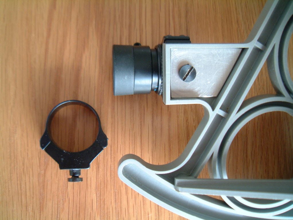 - The plastics in the sextant was too thin for the scope mount , therefore added a piece of 2mm aluminum sheet to beef it up.