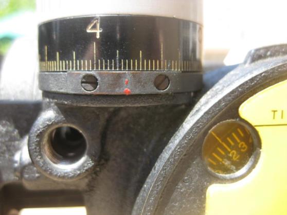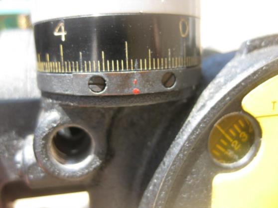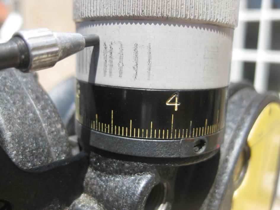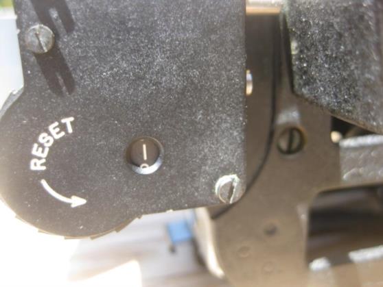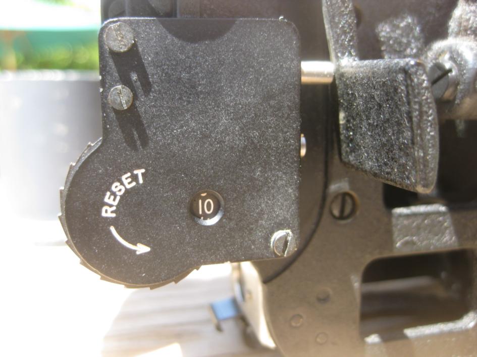 IMG 7869 shows the sextant set up to take an observation. I have set the altitude to 20° 00'. The "2" in the window indicates 20 degrees and the scale on the altitude adjustment knob is on zero degrees and zero minutes. Each division is 2'. One rotation of the knob changes the altitude by 5 degrees and the altitude is read by combining the reading from the window with the reading on the knob. You can see that the shot counter has been reset to zero.