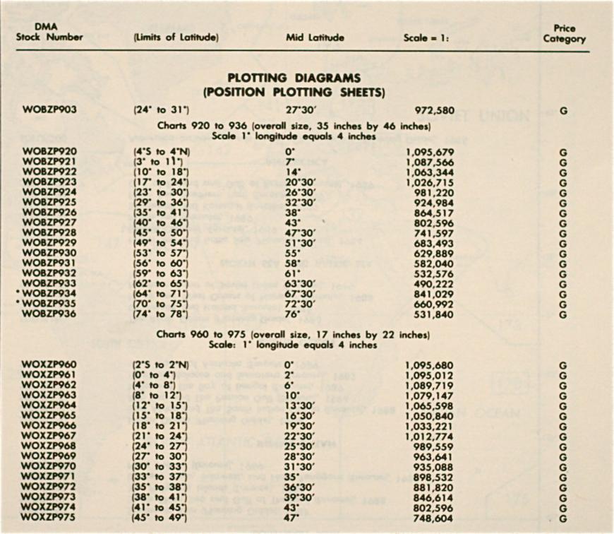 I found some interesting info for you in an old Defense Mapping Catalog. Position Plotting Sheets are printed with the longitude spaced at 4 inches per degree. The scales vary between 1/500,000 and 1/,000,000. There are two sizes- 35 inches by 46 inches and 17 inches by 22 inches. See attachment.