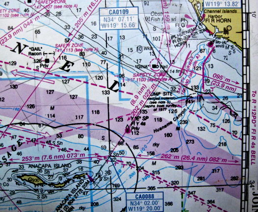 Yesterday had the air temp at 65 F with the water temp at 53 F. Santa Ana winds can blow in with temps over 80 F at very low humidity. What I noticed after working up distances short and beyond the horizon is that the horizon from a 19 ft. height of eye is low by 1 moa and Anacapa Island peaks are high by 5 moa. This gives the islands a towering look.