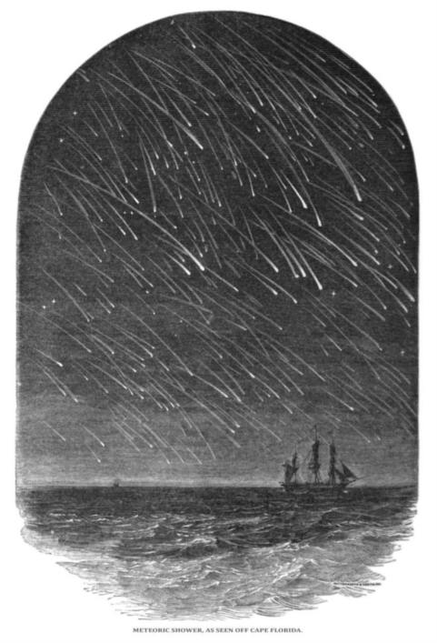 Merry Christmas to everyone. Attached you will find my "Christmas Card". It looks like a snowstorm, doesn't it? I prepared this image recently for a museum curator who's working on an exhibit related to the history of Cape Florida. It's an engraving that was apparently created for Edwin Dunkin's popular astronomy book "The Midnight Sky" which was first published in 1869 (available on Google Books if you're interested). It illustrates the Leonid meteor storm of November 1799 as reported by the American explorer Andrew Ellicott who was sailing off Florida at the time.