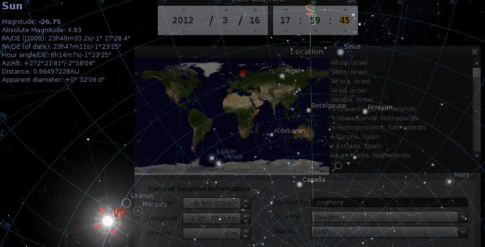 attached image is a screen dump of that program with Sun chosen.