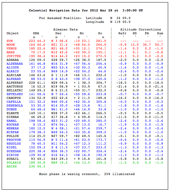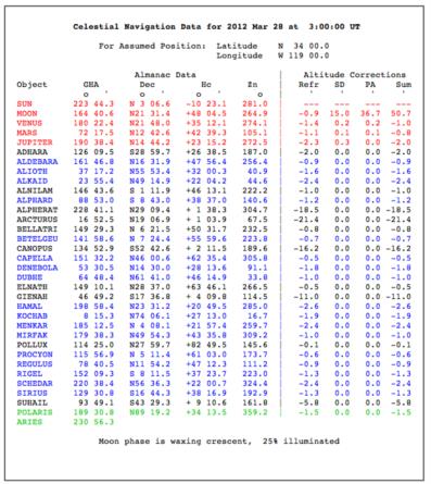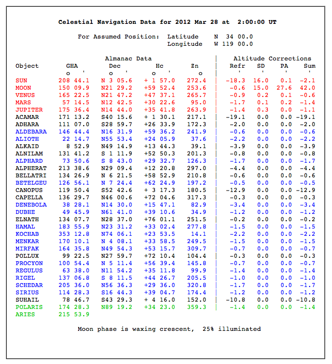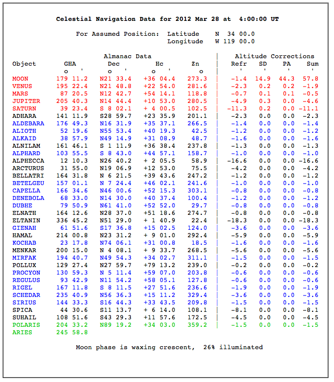 Here are the first results with a metal sextant and a mirror AH, index correction of (+) 0.2: (GPS 35*19.5 N, 119*05.5W)