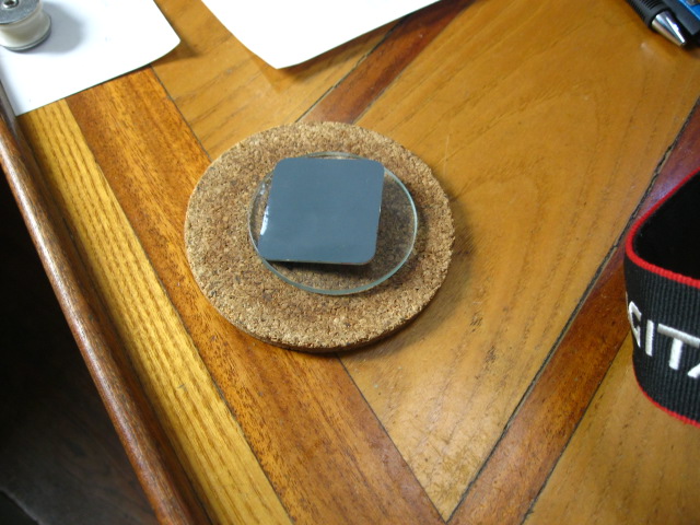 Here are images of the latest Bris Sextant derivative. This one uses a round glass instead of a microscope slide to act as a whole horizon mirror and some mirror stock is used to replace the other microscope slide to act as an index mirror. This makes daytime Moon and twilight Venus observations possible. Preliminary calibration is done using an already calibrated 50 mm lens on a DSLR . This way I can pre-calculate the time I need to be at the beach for an actual natural horizon trial.