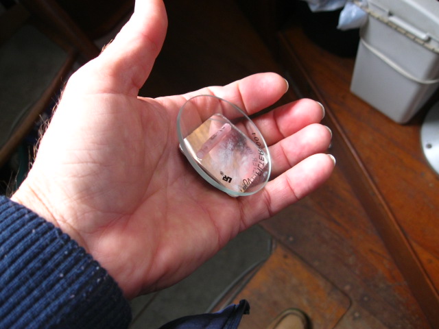 Making a simplified Bris Sextant only requires gluing two microscope slides together with a gap at one end. The larger the gap the greater the angular deflection of the reflected Sun. I used a 0.7 mm pencil lead to set a gap and got 1* 57.8' of deflection. Inspect the linked image and you will see that the reflected image is the sum of four images one on top of the other. This must be from the front and back surface reflections from each slide. The best a navigator can probably hope for is 1' to 2' of precision on a home made version. Still this is pretty good for something that can get lost in a shirt pocket.