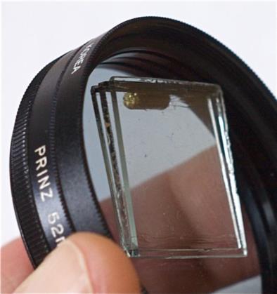 Trials with the camera FAR did not go as well as expected. Finding the vertical with the FAR Sun reflection high of the horizon just wasn't getting it done. A retro Bris using three square pieces similar to the original product does allow for finding the vertical because of the numerous reflected images all in a vertical line. There is also always a reflection of the Sun near the horizon for rocking purpose. To make one all that needed doing was to gap, shim, and stack two more glass squares on top of the existing camera FAR (see image links). Attached are yesterday's trials with the C.FAR showing a large calibration spread.