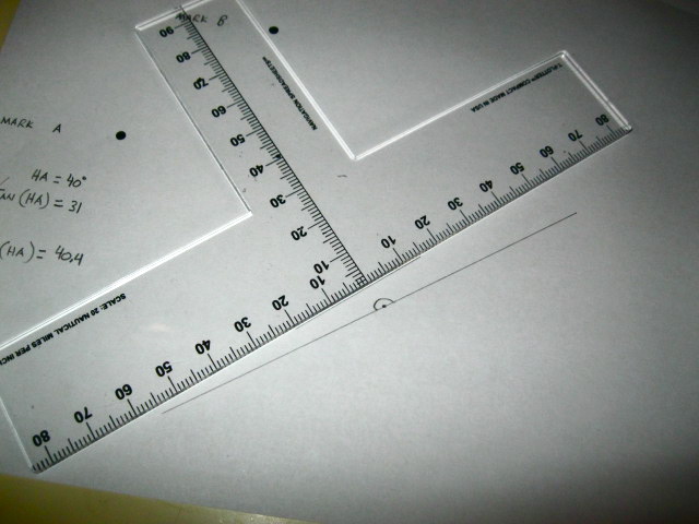 This is how I use the T-Plotter to perform a horizontal angle plot. Also try using a divider compass to perform this plot.