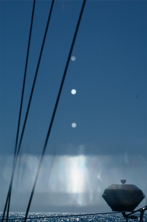 P.S. In the linked image of the three Sun reflections is also observed a BBQ. Cruisers quickly find out that the sailboat is just an accessory to the BBQ. And yes the BBQ got tested too with New York strips timed to the second by chronometer ;-)